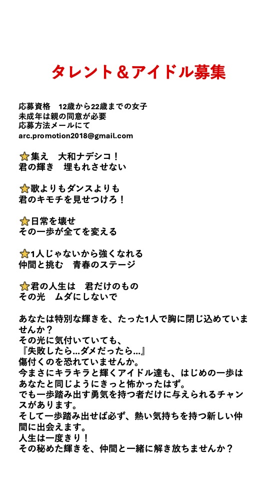 我が社では必ずデビューをさせて行く自信がありますので、応募お待ちしています。